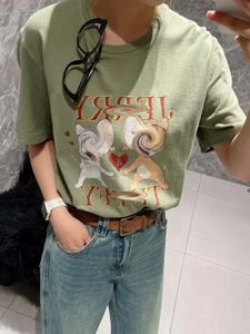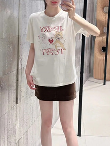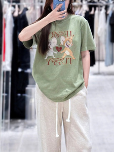 2025秋新款女装休闲百搭卡通印花斑驳洗旧棉质短袖T恤 MBE3TEE003
