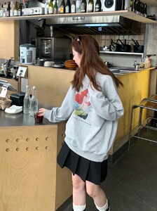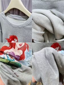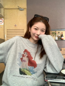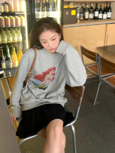 美人鱼世界~2025秋季韩代款卡通休闲上衣 圆领大码宽松灰色卫衣女