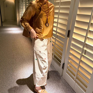 25秋款时髦全立体裁剪彩虹点子纱气球牛仔裤百搭款面料柔软九分裤