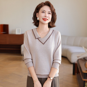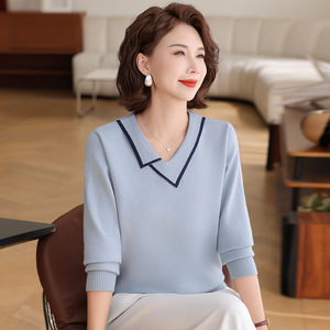 跨境春秋装新款打底小衫春季上衣洋气针织衫毛衣中老年针织衫外套