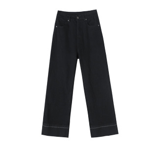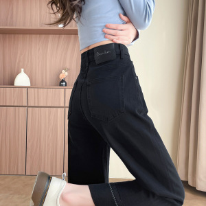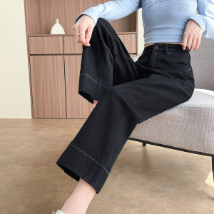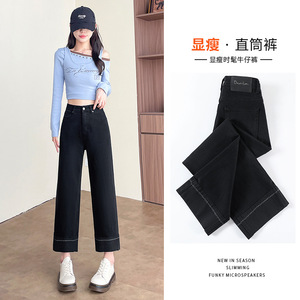 九分直筒裤女秋季新款小个子梨型身材高腰牛仔裤弹力显瘦黑色裤子