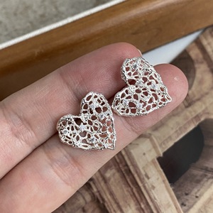 厚银镂空爱心耳钉一对