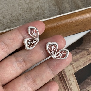 厚银蝴蝶翅膀耳钉一对