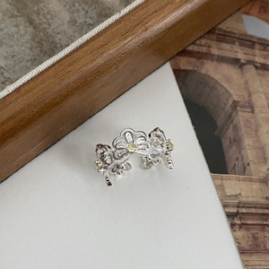 银色黄色锆石花朵戒指