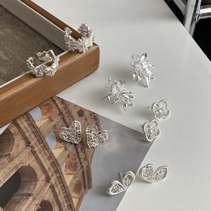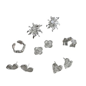 厚银花朵水钻耳钉一对
