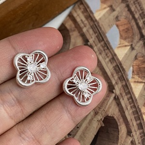 厚银四叶草花耳钉一对