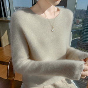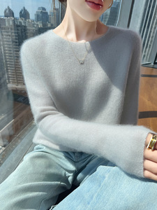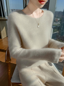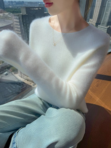 简约百搭秋冬女圆领100羊毛衫百搭打底衫内搭亲肤毛衣设计感显瘦