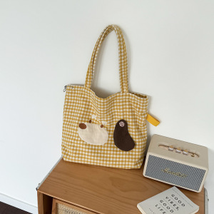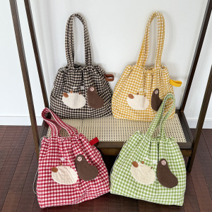 韩系格子卡通手拎小包包女2025新款可爱时尚通勤包外出休闲单肩包