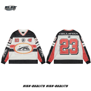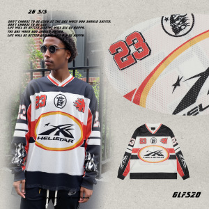 GLFS 秋国潮撞色巴家古着冰球球衣长T v领数码网眼布长袖男式卫衣