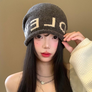 秋冬时尚个性百搭提花毛线帽欧美休闲保暖笑脸冷帽欧美跨境针织帽