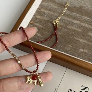 金色花生红色天然石串珠项链