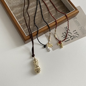 棕色韩国绒金花生项链