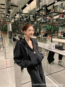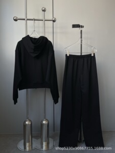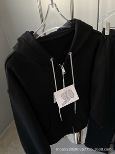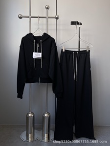 高版2025秋冬大王新款水晶钻抽绳拉链连帽卫衣外套+长裤套装