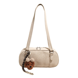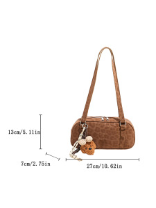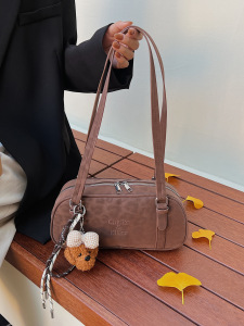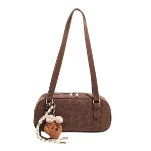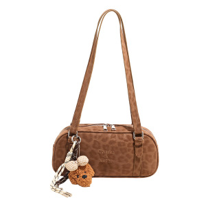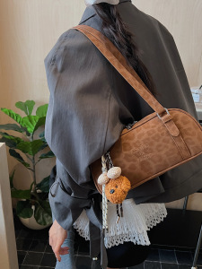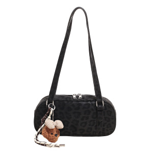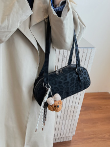 2025秋冬磨砂豹纹复古法棍包软PU流行单肩包流行百搭手提保龄球包