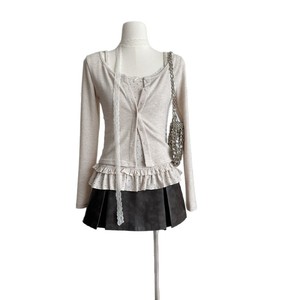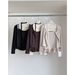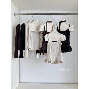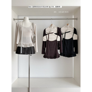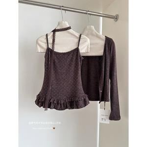秋上新!新款韩系温柔气质木耳边波点吊带背心+百搭小开衫两件套