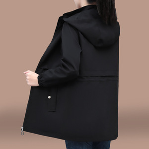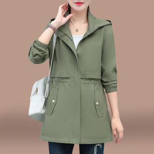 中长款风衣外套女2025新款春秋中年妈妈时尚女装宽松连帽收腰上衣