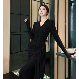法式气质女人味高级感绑带收腰时尚御姐风减龄时尚炸街打底连衣裙