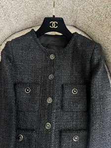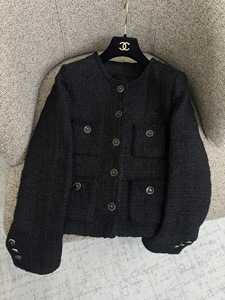 欧美小香风金属扣子口袋粗纺短外套秋季新款宽松单排扣休闲上衣女