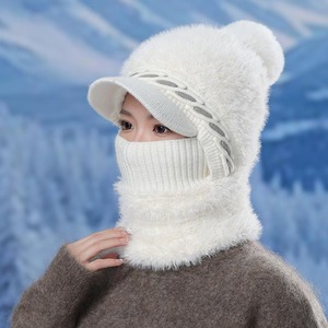 冬季针织毛线帽子女面罩围脖一体户外骑车加绒保暖护耳毛绒防寒帽