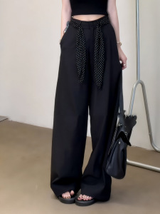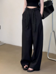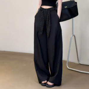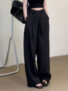 高级感黑色阔腿西装裤女秋季新款宽松显瘦通勤百搭直筒拖地长裤子