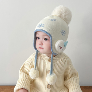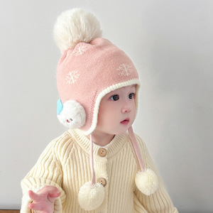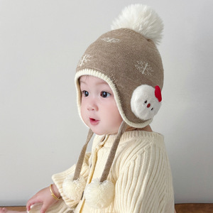 婴儿帽子秋冬季超萌可爱护耳针织帽冬天男孩女孩加厚保暖毛线帽