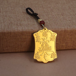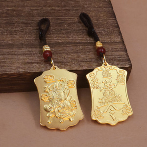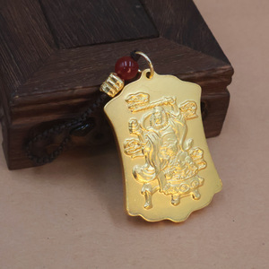 沙金五路财神招财令武财神赵公明吊坠招财令挂件黄铜汽车钥匙扣