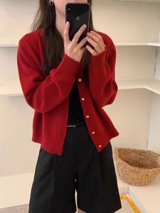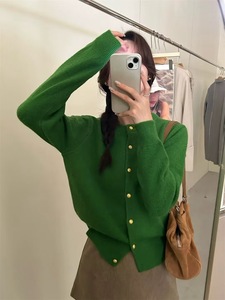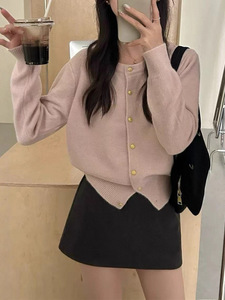Ceiils2025年秋款多色温柔毛衣女金色扣针织小开衫早外搭宽松短款