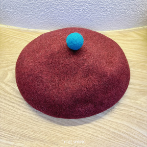 批发韩国2025年秋冬新款复古毛球羊毛贝雷帽休闲保暖显脸小画家帽