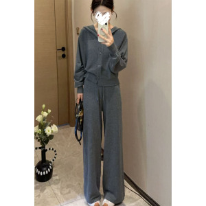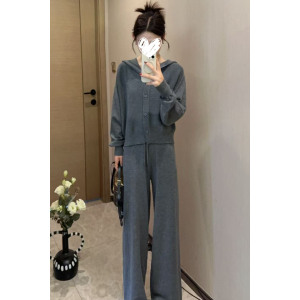 2025早秋新款时尚套装女洋气减龄宽松连帽上衣女高腰阔腿裤两件套