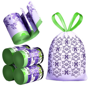 薰衣草垃圾袋家用加厚印花免撕抽绳垃圾袋抽绳式手提特厚塑料袋子