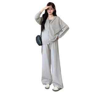 孕妇装秋冬季潮妈新款宽松时髦洋气假两件拼接条纹连帽针织两件套