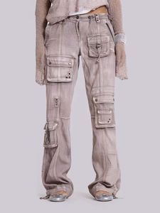 Jaded London 欧美辣妹朋克风铆钉PU皮革修身显瘦复古口袋工装裤