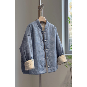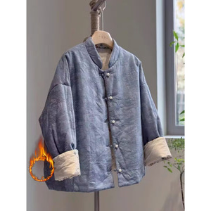国风中式提花女装夹棉外套立领对襟保暖棉衣文艺复古小棉袄