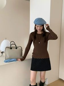 咖色 后背蝴蝶结打底衫