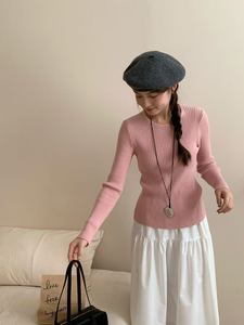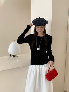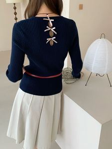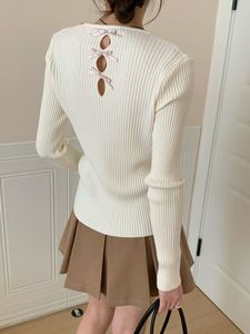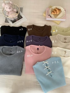 韩系后背蝴蝶结设计感打底针织衫毛衣女秋冬新款修身显瘦上衣1354