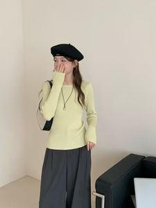 浅黄 后背蝴蝶结打底衫