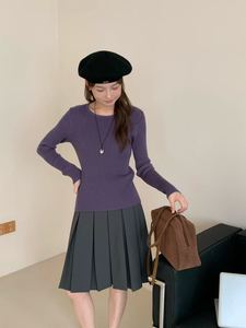 紫色 后背蝴蝶结打底衫
