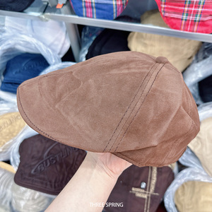 批发韩国2025年早秋新款日系复古简约纯色前进帽女时尚透气八角帽
