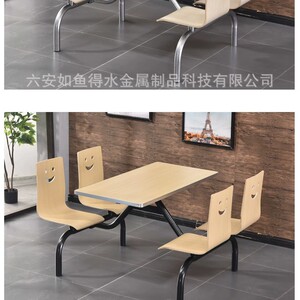 学校位员食堂圆桌四人6人快餐桌椅公司饭堂锈钢连体小吃店
