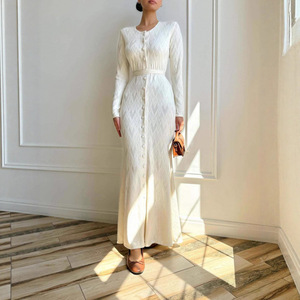 欧美女装跨境外贸时尚2025秋季新款圆领纽扣系带修身针织毛衣裙