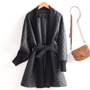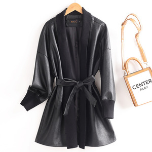 跨境秋冬新款海宁绵羊皮衣长款风衣高级感收腰时尚翻领外套潮批发