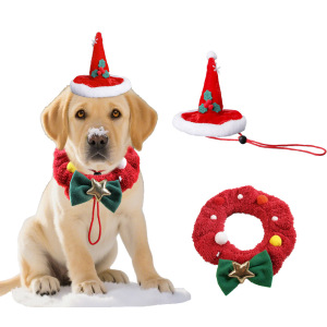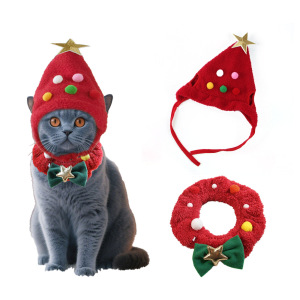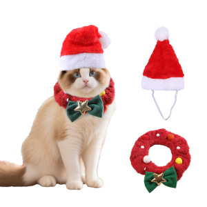 亚马逊新品圣诞节宠物装扮帽子围脖套装 猫咪狗狗帽子围脖口水巾