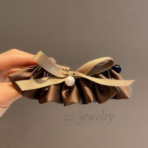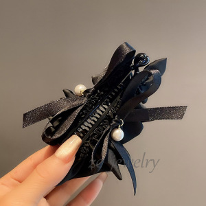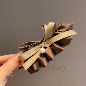 韩国东大门精致缎面花苞珍珠香蕉夹女时尚轻奢后脑勺横夹发卡发饰