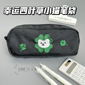 幸运四叶草小猫笔袋ins可爱大容量化妆包高颜值少女心文具收纳盒