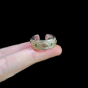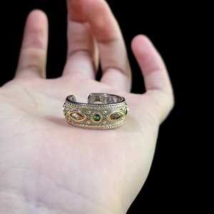 vintage中世纪感椭圆彩宝戒指指环小众设计金麦穗戒指女百搭秋冬