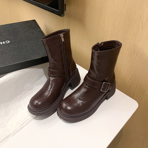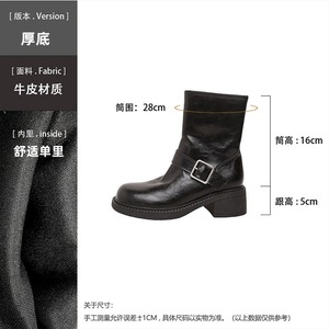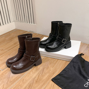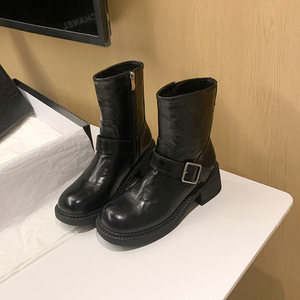 短靴女潮酷厚底机车女骑士靴时尚百搭女秋冬皮带扣粗跟马丁靴女靴
