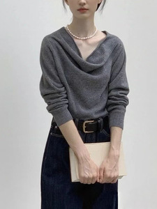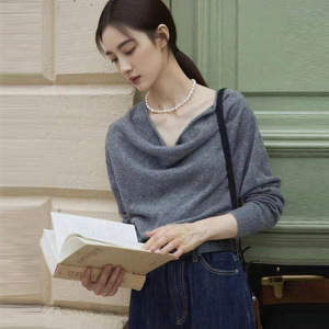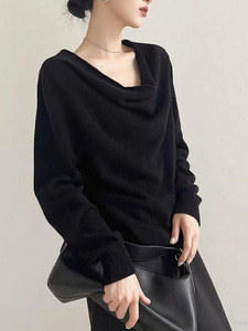 港米服饰/法式荡领小众100羊毛女氛围感打底衫毛衣百搭宽松显瘦