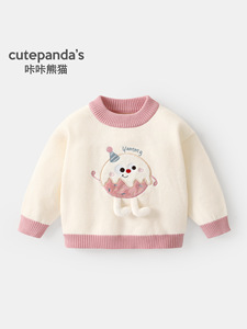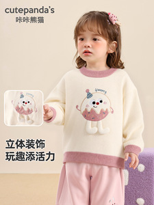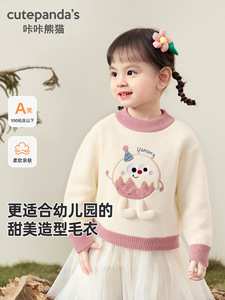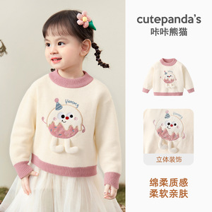 咔咔熊猫女童针织毛衣儿童冬装婴儿冬季保暖上衣宝宝秋冬衣服童装