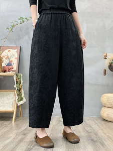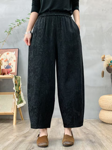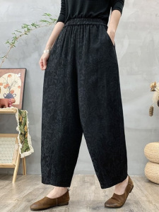 批发2025秋季新款高腰气质休闲裤复古新中式文艺民族风阔腿裤百搭