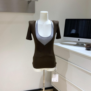 强推!挚爱小T 天丝假两件撞色挂脖修身短袖T恤女